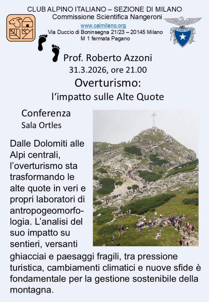 31.3.2026, ore 21.00 “Overturismo e il suo impatto sulle Alte Quote”, conferenza di Roberto Azzoni
